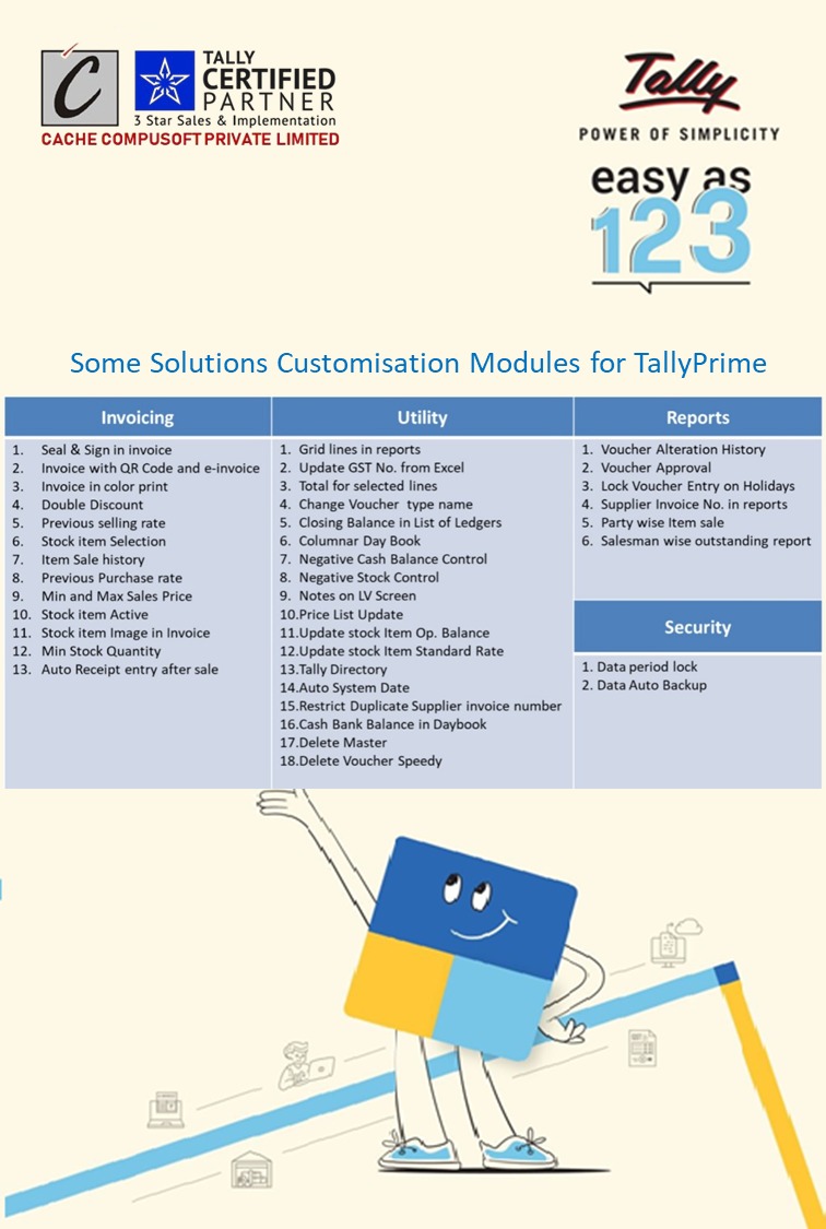 For Tally support and assistance feel free to contact us. We provide support for Tally installation, Data Integration, Invoice Customization, Customized reports, Auto Filled Forms and many more.